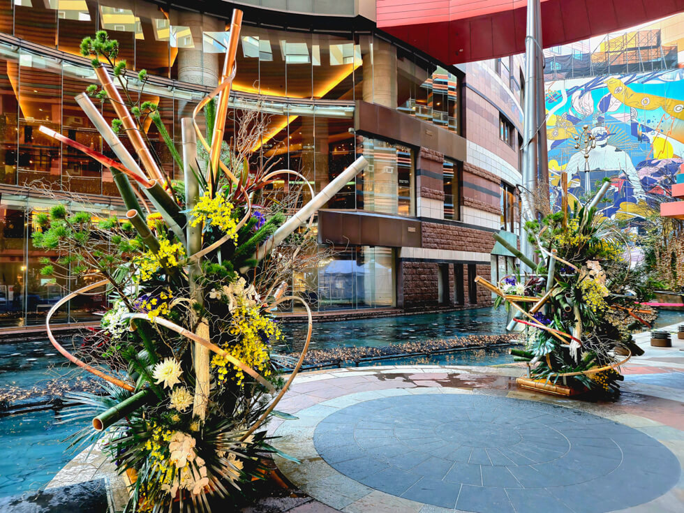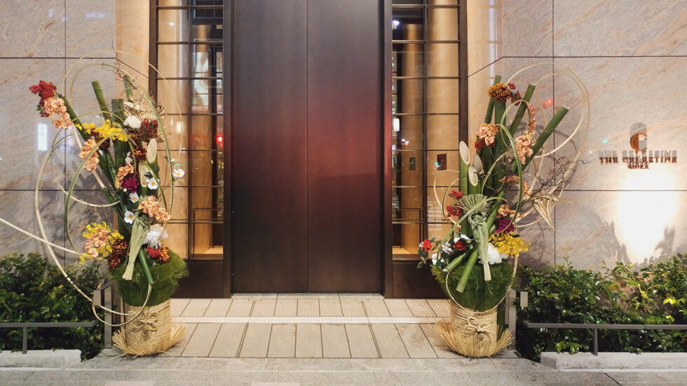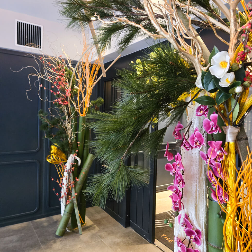 - 凛とした竹の佇まいや松の力強さ、梅の可憐さが調和する装飾は、訪れる人々に新年の清々しさを感じさせる装飾です。